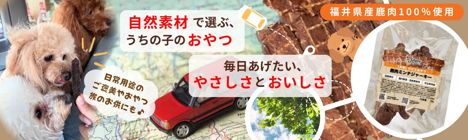 福井県の自然で育まれた天然鹿を100%使用した、完全無添加の犬用おやつです。