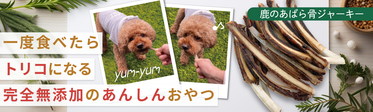 愛犬の健康と噛む楽しさをサポートする自然素材のおやつです。国産の鹿骨をじっくり乾燥させた完全無添加のジャーキーは、低脂肪・高たんぱくなので、安心して愛犬に与えられます。