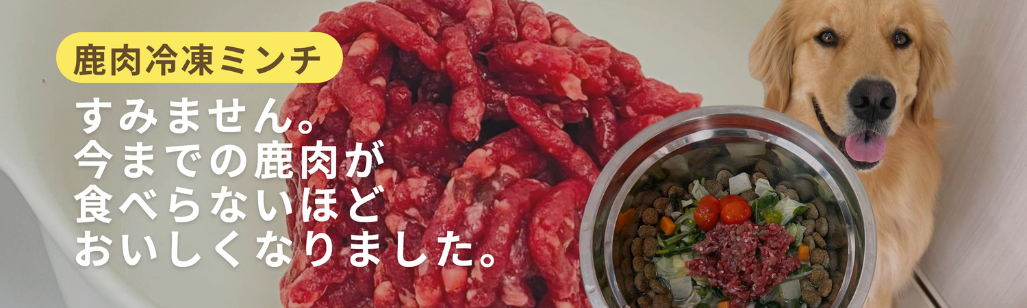人間が食べることのできるほど高品質なヒューマングレードの福井県産鹿肉100%を使用しています。鹿肉本来のおいしさを逃さないように急速冷凍加工を行うことで、お肉の細胞破壊を限りなく防ぎ、鹿肉本来のみずみずしさや味、食感、見栄えを維持しています。